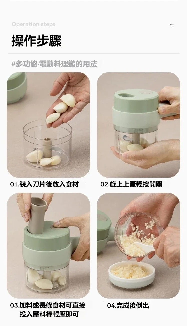 12分鐘前【多功能加特林切菜器】 搗蒜神器節省時間 家用無線電動 操作簡便多功能三合一手持迷你料理機 避免浪費清洗方便外觀精美 - 「解放您的雙手 輕鬆解決切菜煩惱」優惠套餐 2入組-NT$1398